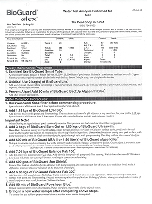 The computer software (Alex) used to drive the BioGuard Water Analysis program was specifically written to be used in conjunction with the BioGuard range of pool chemical products.